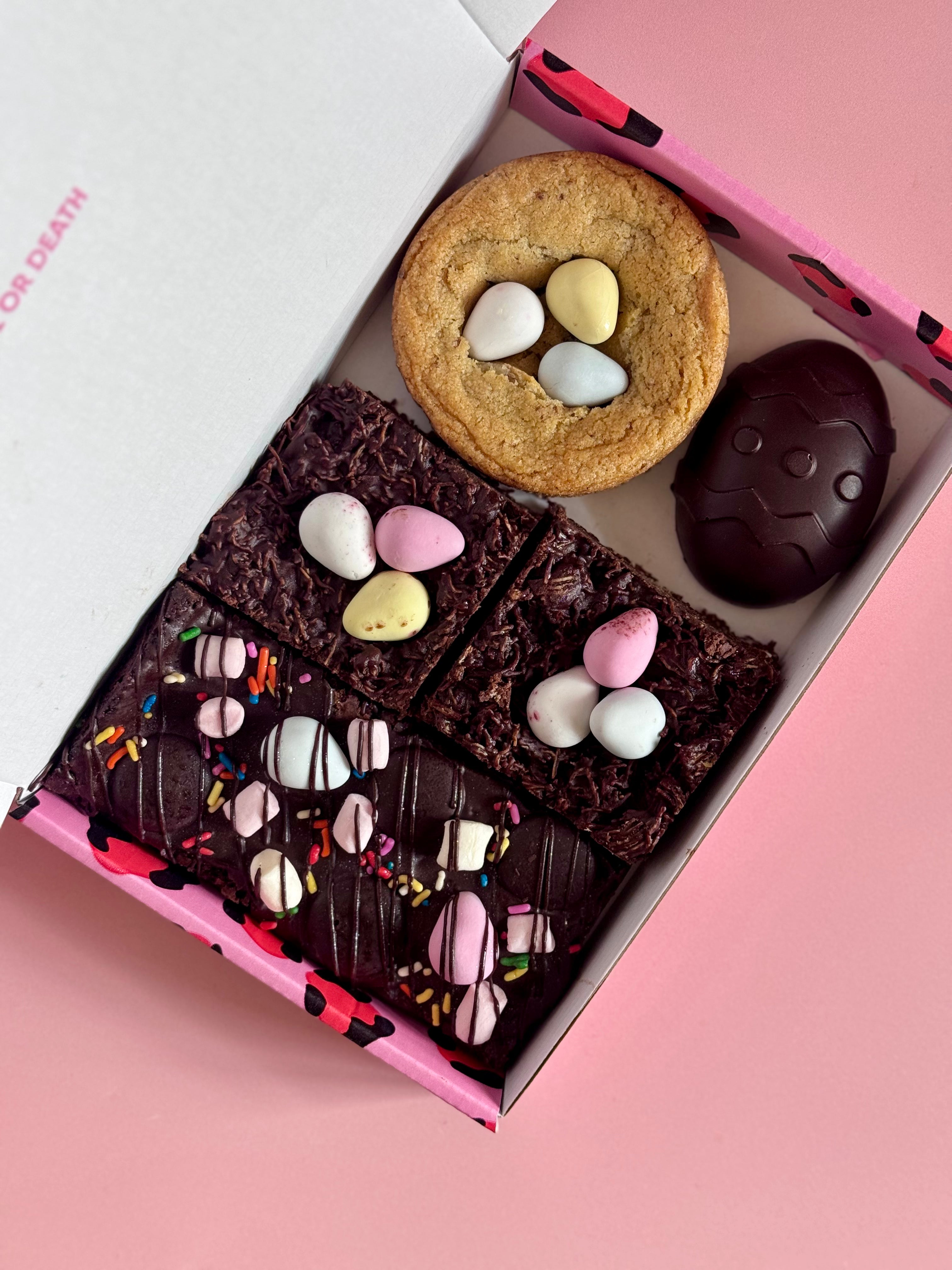 The Cake or Death experience is a luxury treat; from it dropping on your doormat, right through to the last mouthful. These aren’t any ordinary brownies. Cake or Death secret-recipe brownies are everything a brownie should be; fudgy, indulgent and very moreish. Choose from our best-selling mixed flavour boxes for the perfect gift, or build your own box for a decadent treat. Posting all over the UK including Northern Ireland, you might wish you hadn't discovered us....