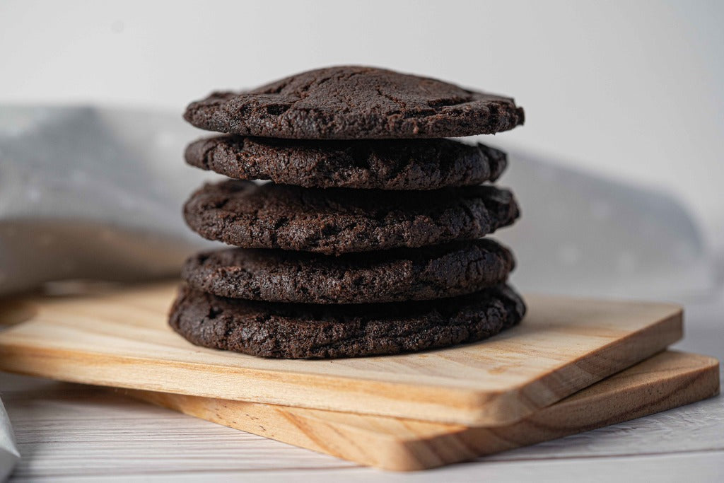 Our house-made double chocolate cookie dough is made with cocoa powder and dark chocolate chips and is delicious eaten straight out of the box or the oven!